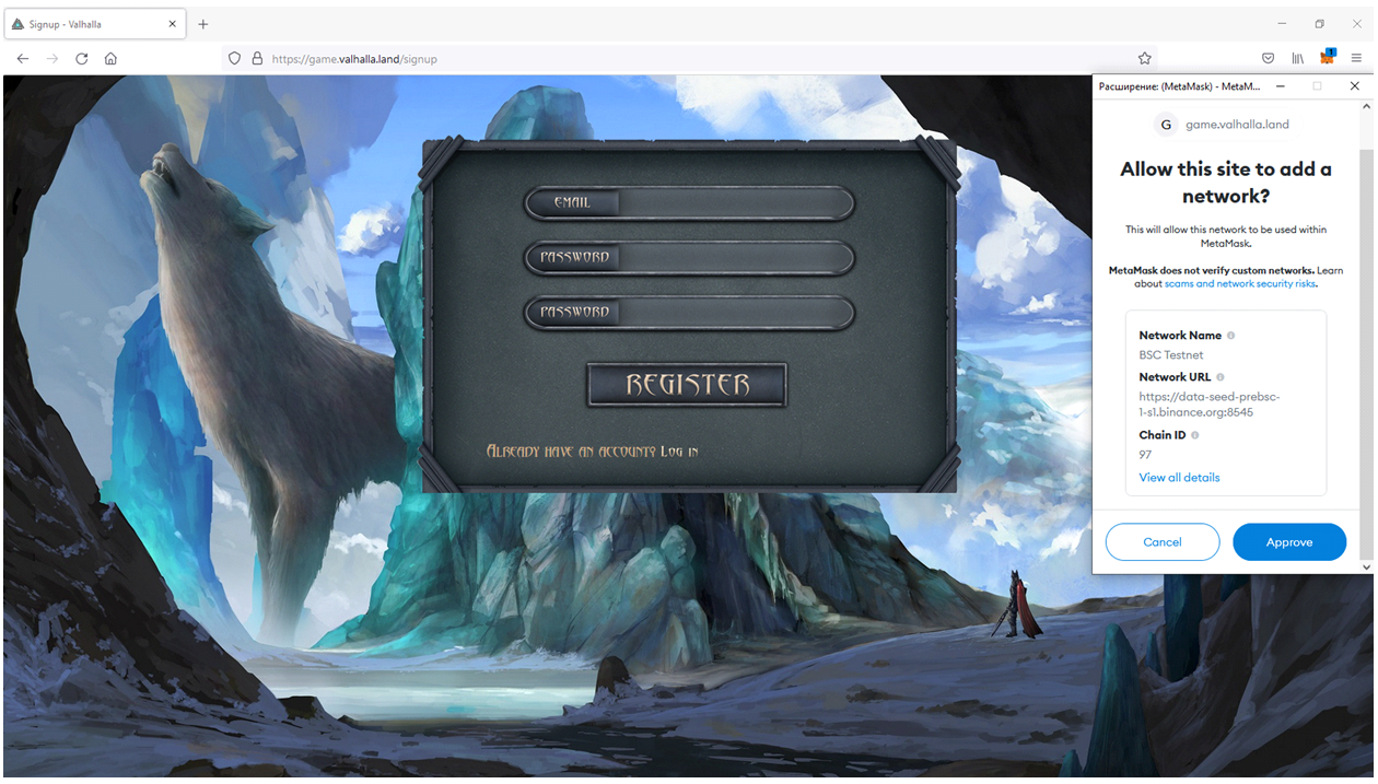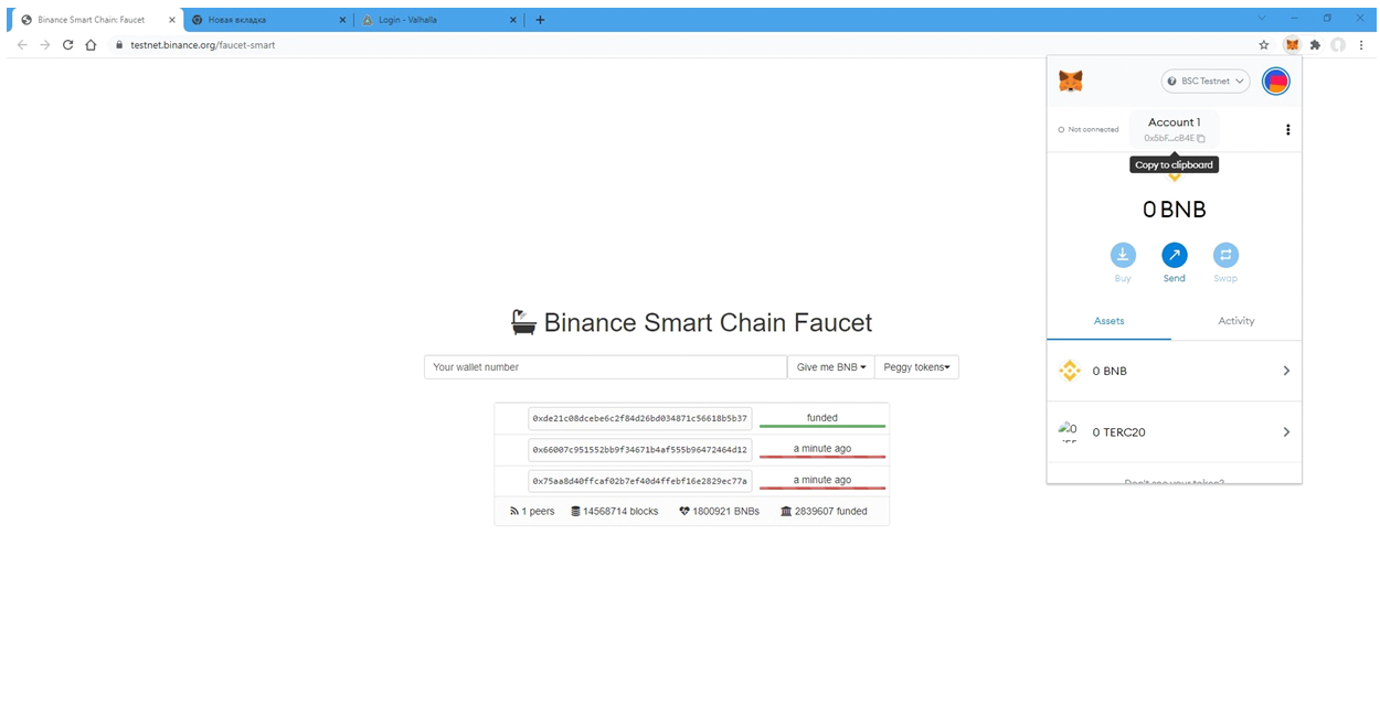 VALHALLA- Получите коин BNB перейдя по ссылке https://testnet.binance.org/faucet-smart и указав Ваш кошелек метамаск нажмите "Give me BNB" (Данная функция осуществима 1 раз в сутки)