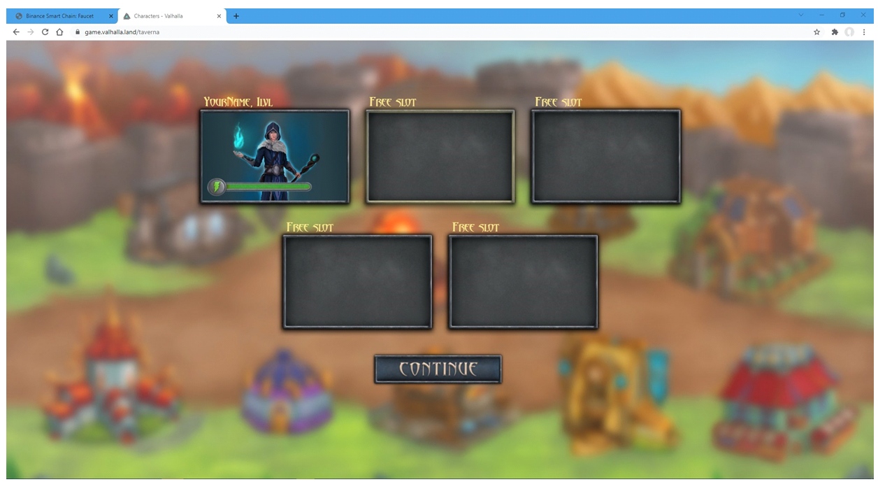 Выбираете Вашего персонажа и нажимаете кнопку "Continue"