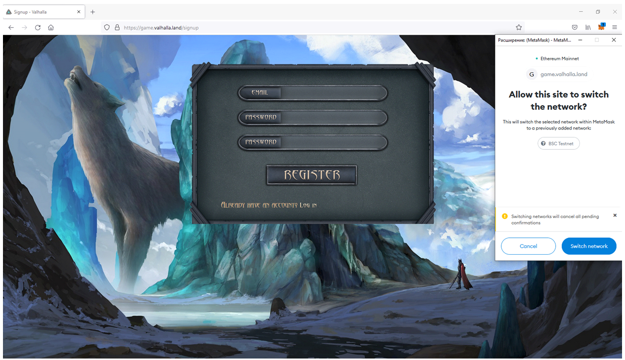 4. Далее сайт предложит переключиться на сеть BSC Testnet – подтвердите действие