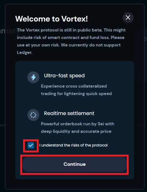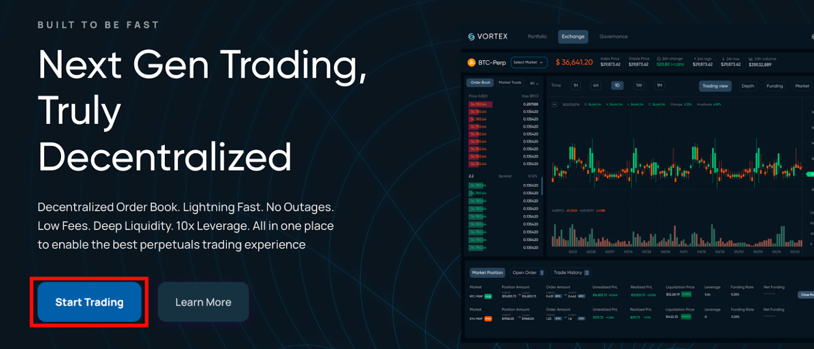 2. Перейдите на сайт https://vortexprotocol.io/ и нажмите кнопку [Start Trading]