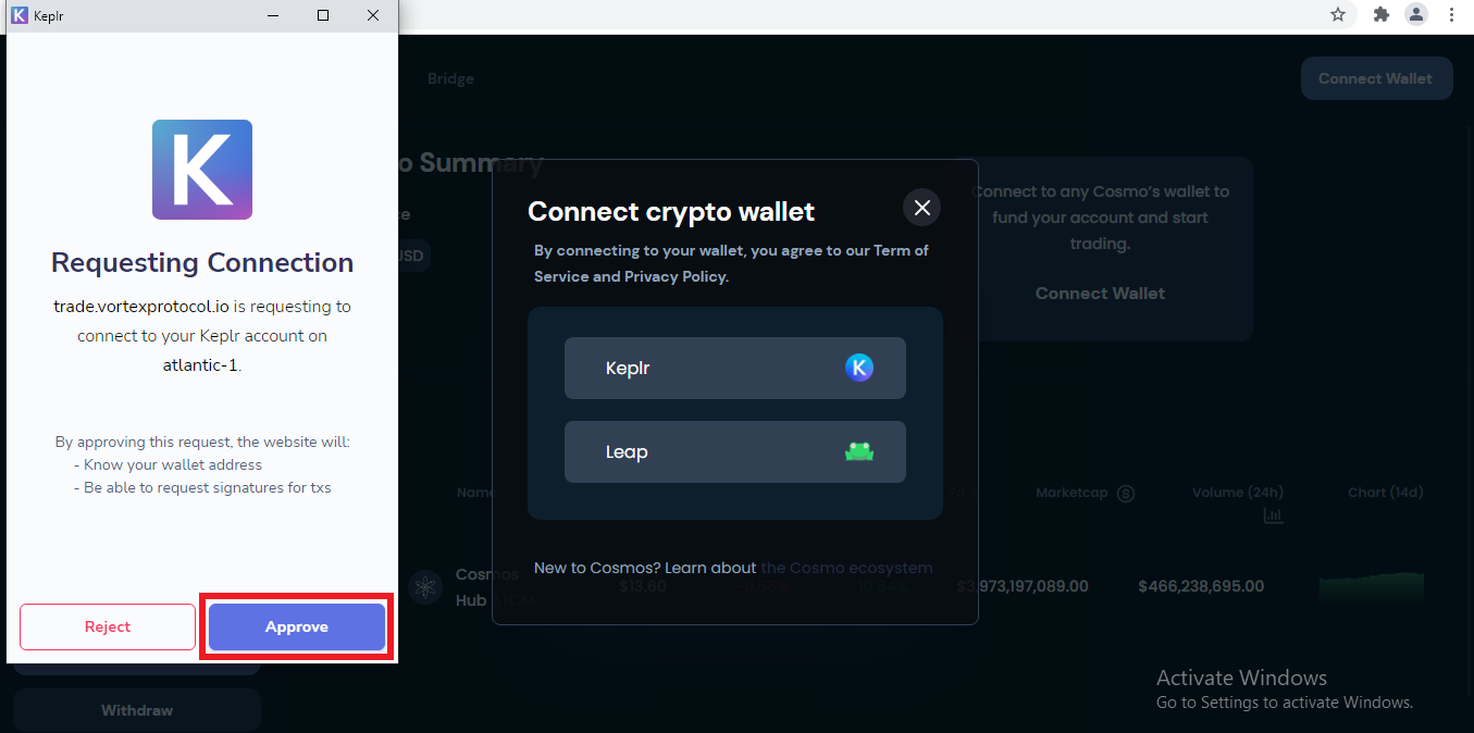 2. Нажмите [Approve] в кошельке