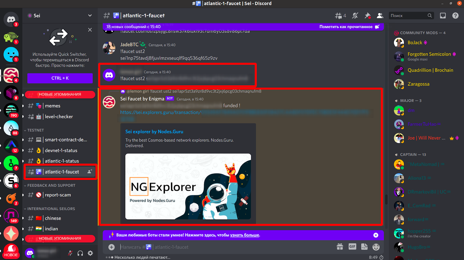 13. Подпишитесь на официальный дискорд Sei Network https://discord.gg/sei