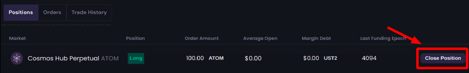 1. В разделе [Positions] нажмите кнопку [Close Position]