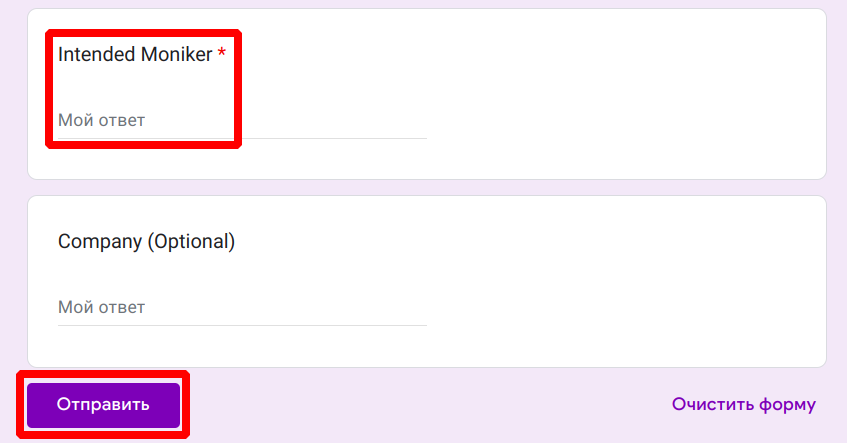 17. В поле [Intended Moniker] укажите ваш никнейм