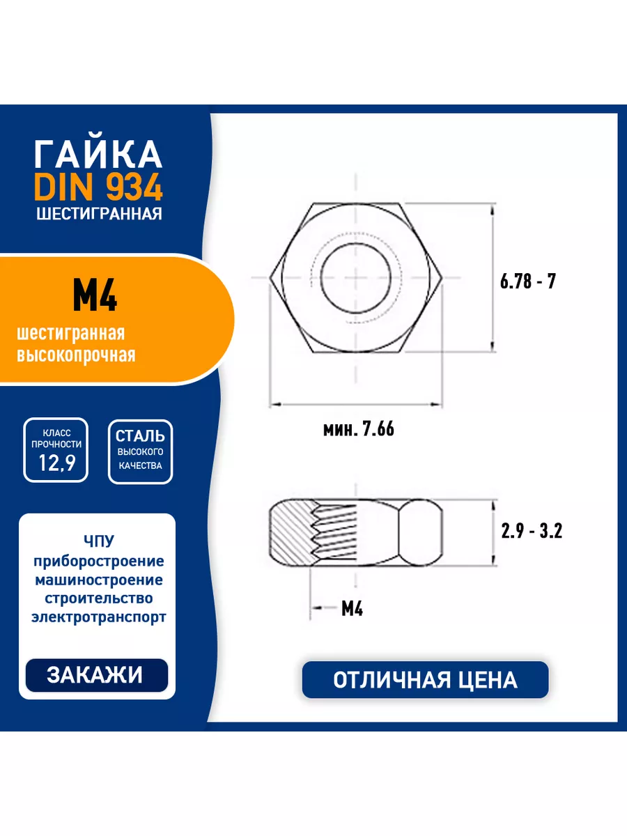 Гайка din 934 размеры