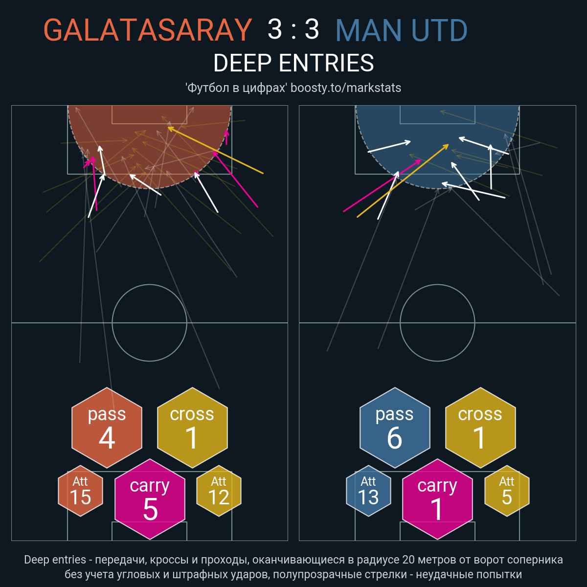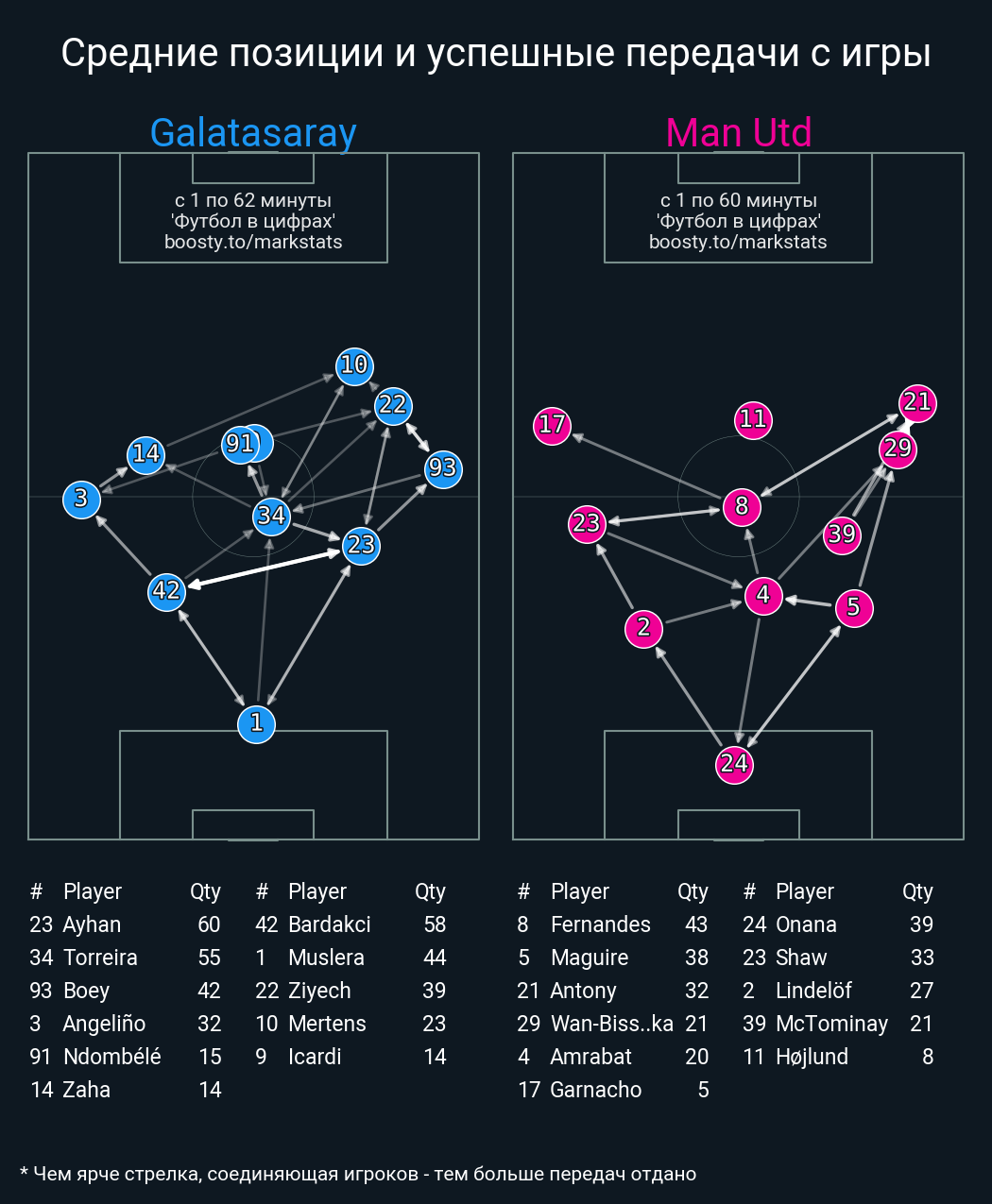 24 успешных передач из 33 попыток (1 под удар, 5 с продвижением, 14 на трети соперника)