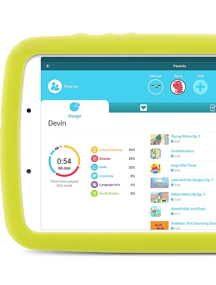 Galaxy Tab A7 Kids Edition . De Galaxy Tab A7 is de perfecte tablet voor het hele gezin en met deze speciale Kids Edition bieden we jou: • een schokbestendige, kindvriendelijke groene cover met uitklapbare steun t .w .v . €30 . • Samsung Kids & Parental Control met exclusieve apps en content in een veilige omgeving .