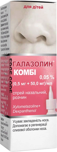 Галазолин Combi 0,05 % 1 доза назального спрея (0,1 мл раствора) содержит 0,05 мг ксилометазолина гидрохлорида и 5,0 мг декспантенола . Дети в возрасте от 2 до 12 лет По одной дозе спрея в каждый носовой ход 1 или 2 раза в сутки (каждые 8-10 часов) . Не следует применять более 3 доз препарата в каждый носовой ход в сутки .