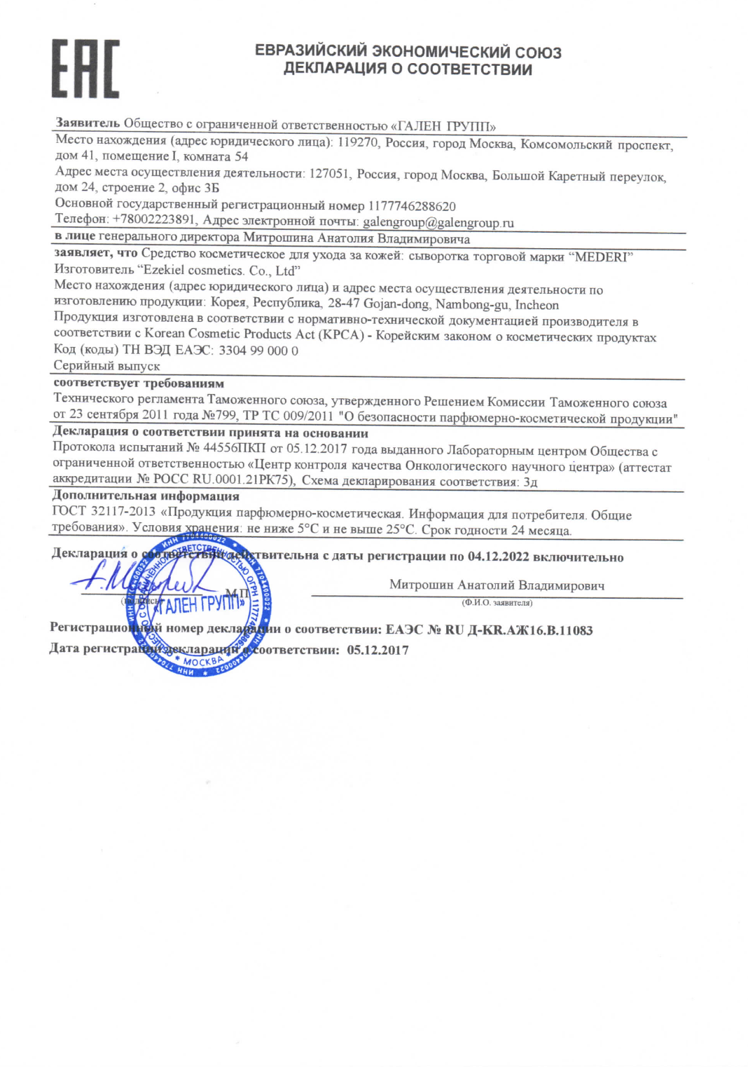 ООО "Гален Групп", Москва (ИНН 7704400022, ОГРН . . .