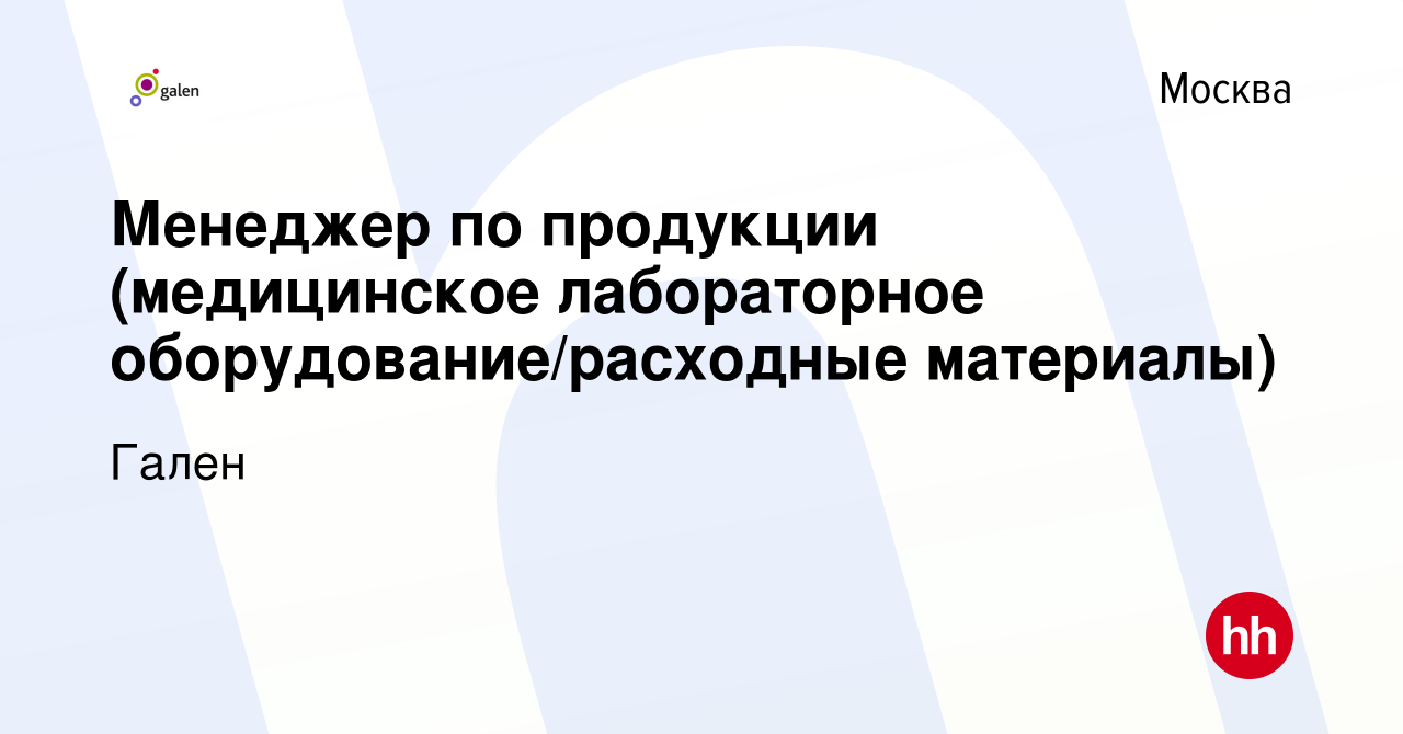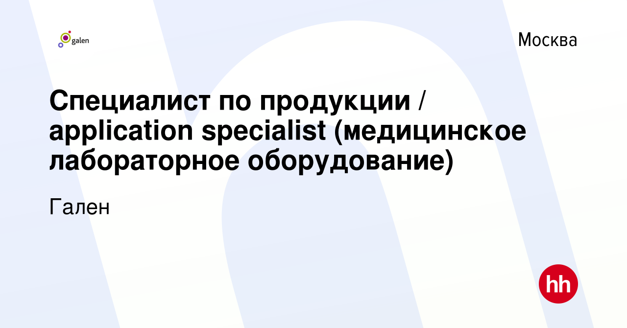 Специалист по продукции (медицинское лабораторное оборудование) в ЗАО "ФИРМА ГАЛЕН" ( посмотреть профиль )
