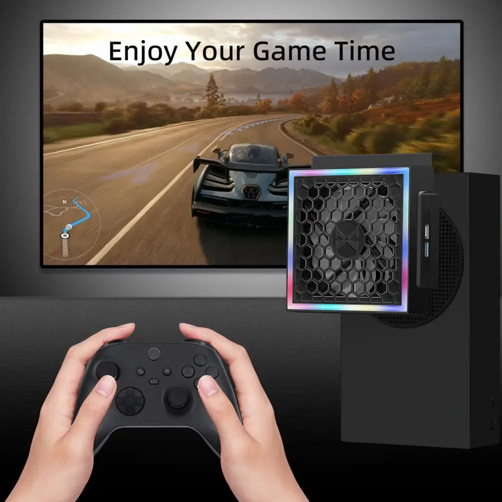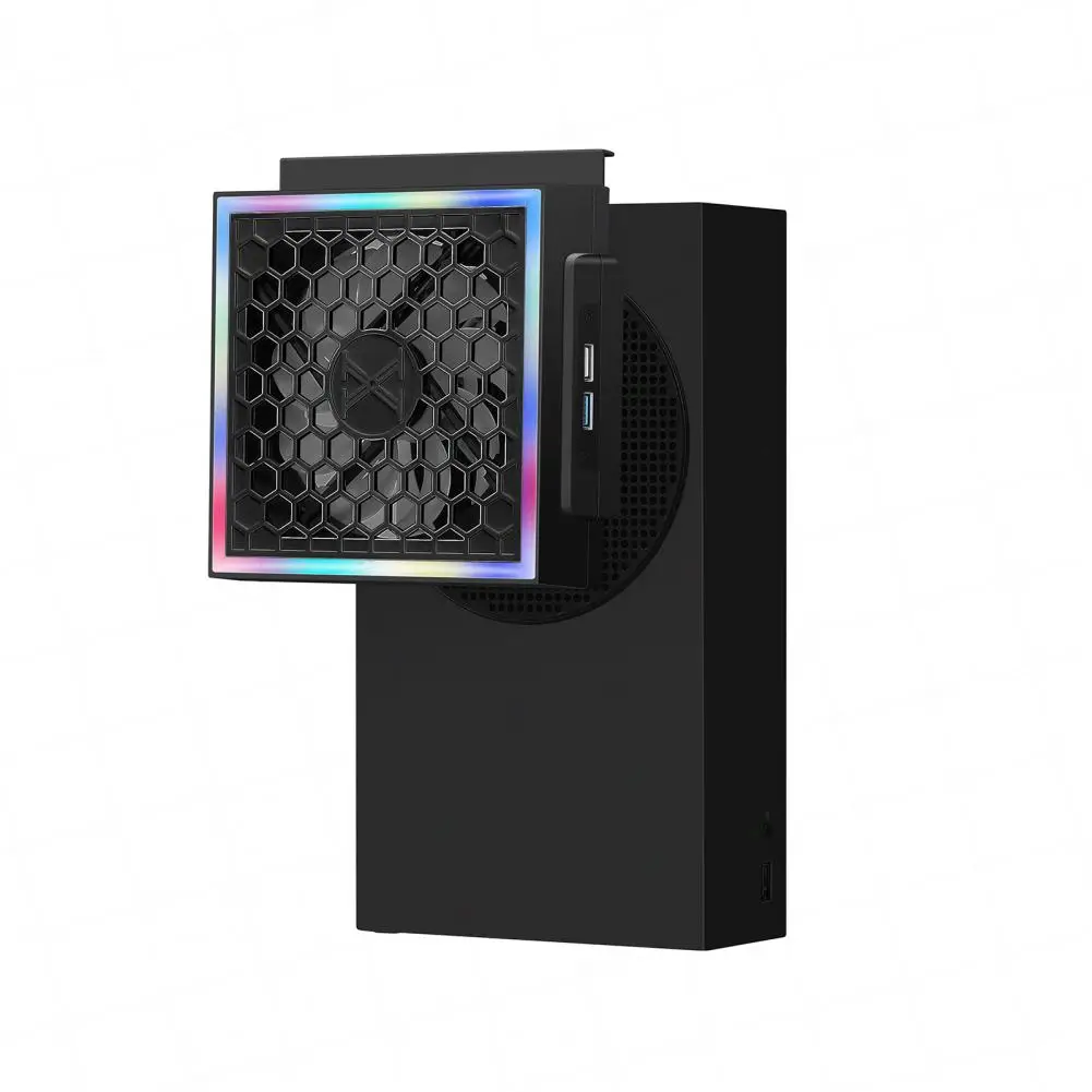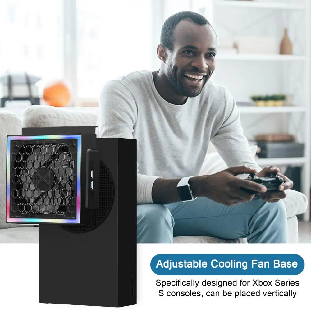 VtnxQjWPdfHere you can buy Game Console Side Cooler Holder RGB LED Lighting 3 Levels Adjustable 2 USB Ports Cooling Fan Base for Xbox Series S Game Console with free delivery to your post office.