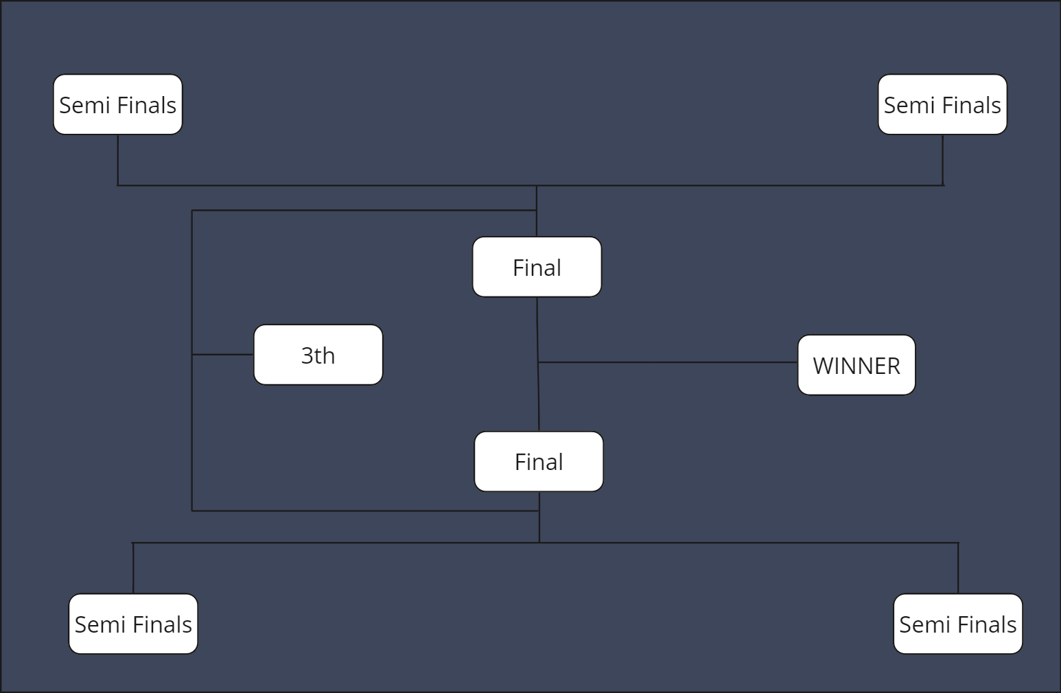 3) Knockout Stage with 10 or more participant players: In this phase, the top 4 players of the Championship Phase will qualify to the semifinals and final in a bracket format to determine who is on the podium (First, Second, Third).