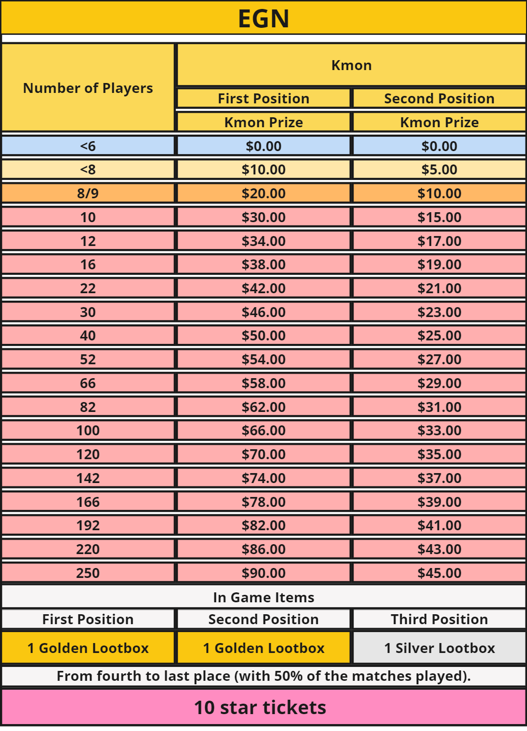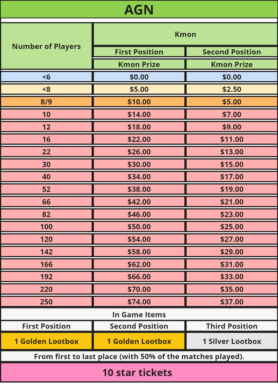 12) The cumulative and increasing reward system based on the number of participants will count only the total number of players that complete at least ⅓ of the total matches.