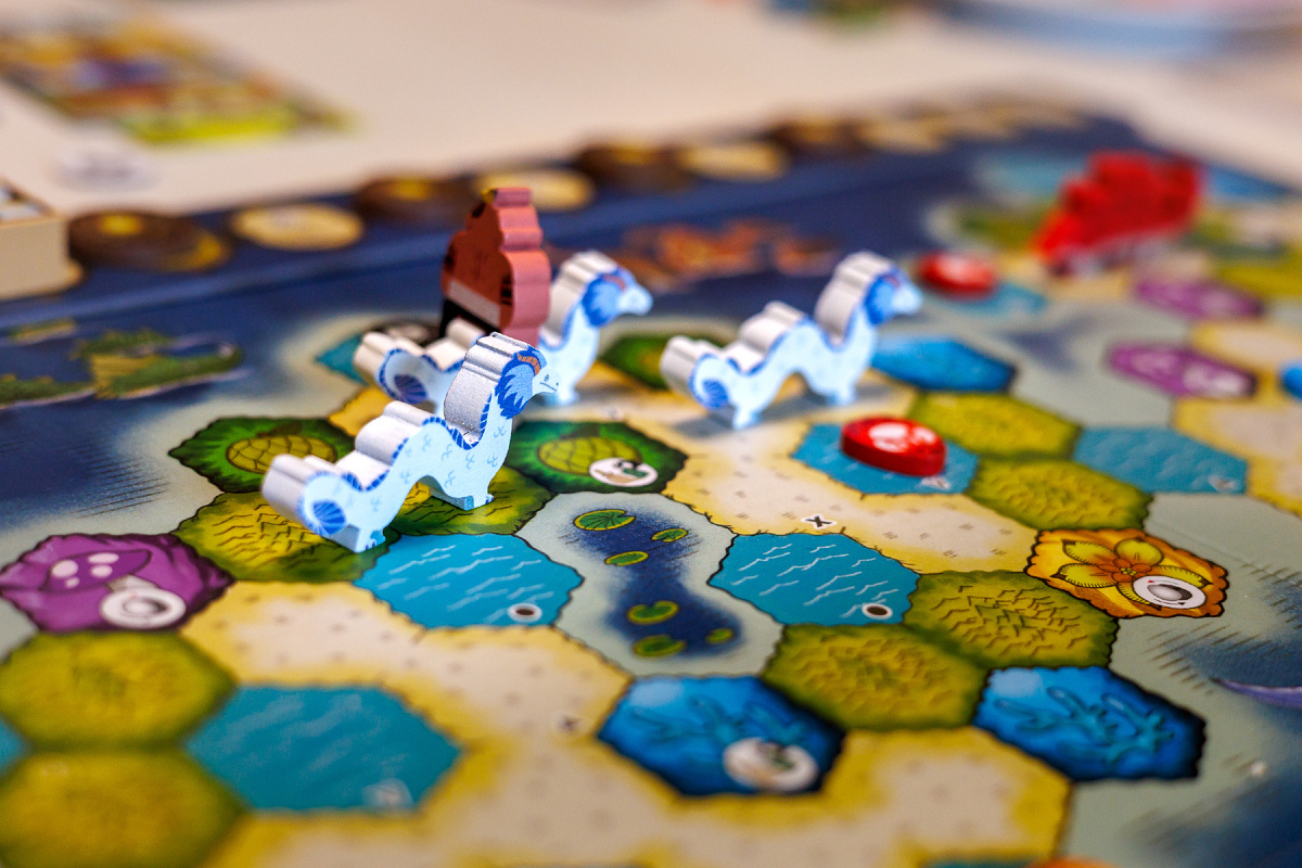 Работает в поле всё интересно: вы постоянно находитесь в напряжении между желанием занять место, которое принесёт максимум ресурсов, подбором яйца существа и взятием нужной карты. Ресурсы добываются очень медленно и тяжело, на старте вы будете балансировать между 2 и 3 ресурсами и ближе концу сможете получить 4, но это чертовски мало.
