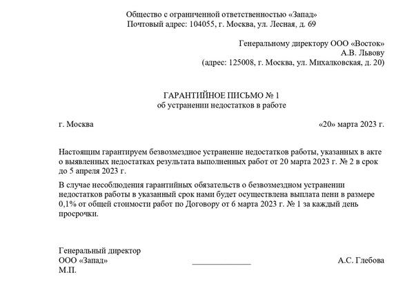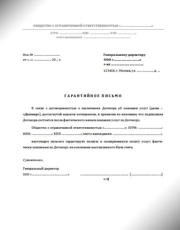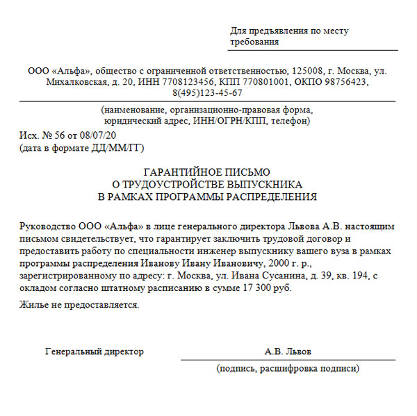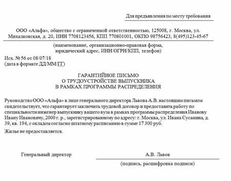Гарантийное письмо о прохождении практики