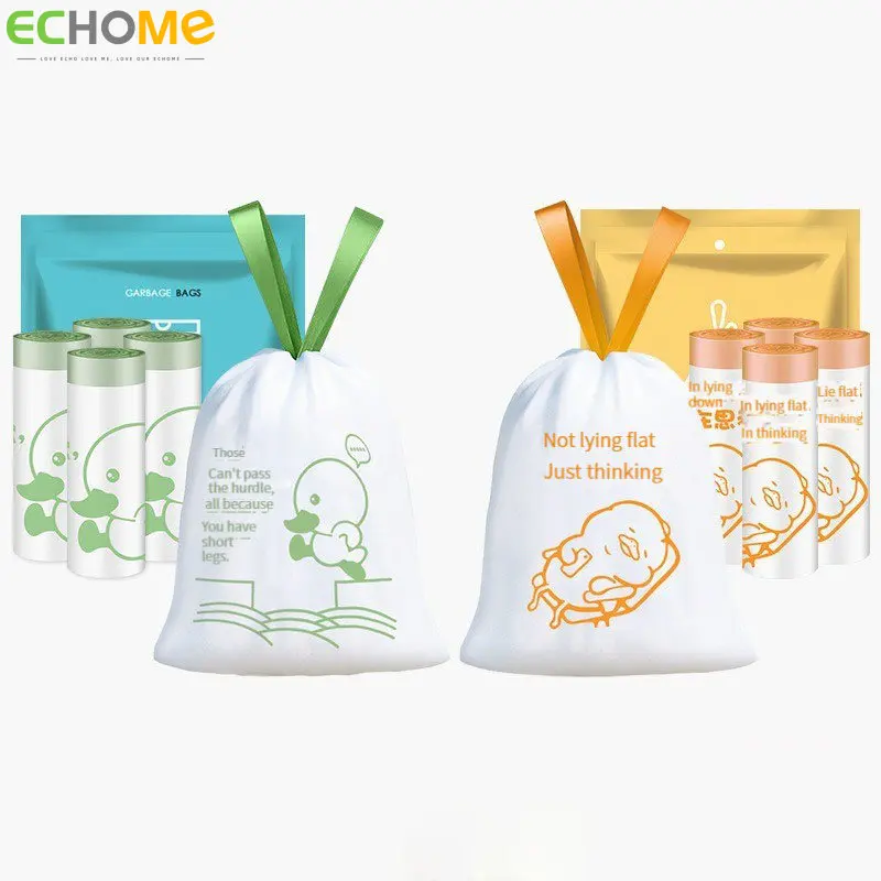 Garbage Bag Portable Drawstring Disposable Thickened Kitchen Household Printing Tear Free Automatic Closure Large Plastic Bag - Купить с бесплатной доставкой