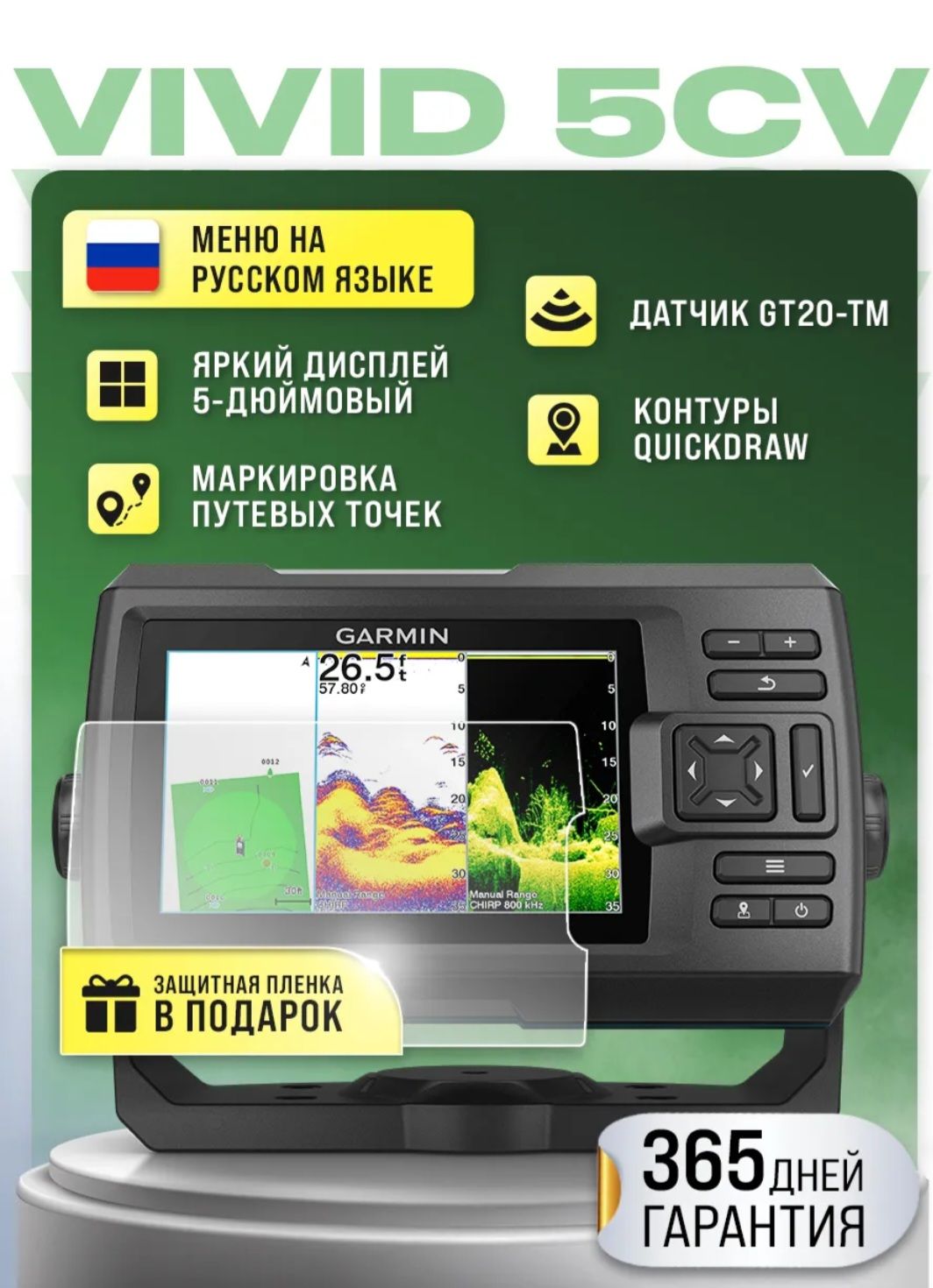 Garmin striker 5cv с датчиком gt20