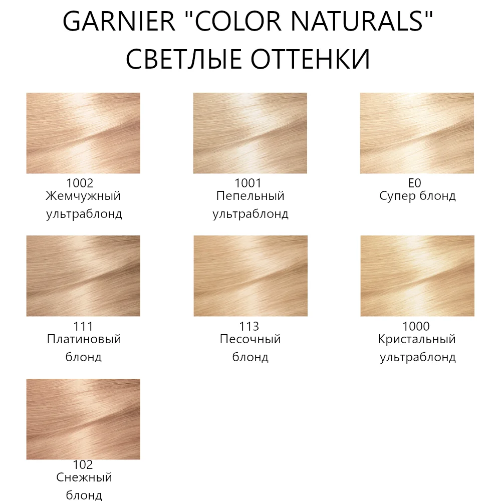 К светлым оттенкам относится номер 8 .1 натуральная «слоновая кость», 8 естественный «светло-русый» и 9 почти обесцвеченный «очень Оригинальные тона как пепельный или жемчужный блонд можно найти в других сериях «Гарньер» . Сенсационная чувственность .