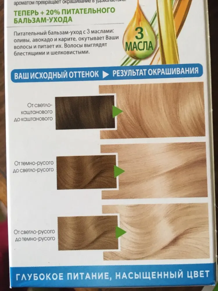 Для светлых оттенков русых волос . Обеспечивает волосам питательный уход, делает их мягкими и шелковистыми . «Гарньер» - краска для волос любого типа и цвета, но самая широкая панель оттенков создана производителем для обладательниц светлых и русых волос .