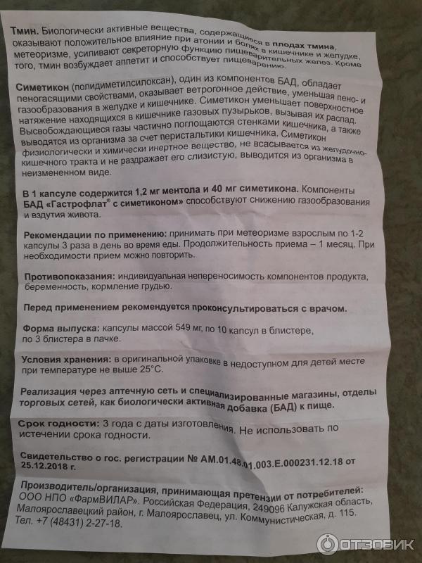Гастрофлат с симетиконом . 30 капсул массой 549 мг . Инструкция; Цены; Отзывы; Вопросы; Номер свидетельства Форма выпуска . 30 капсул массой 549 мг . Состав