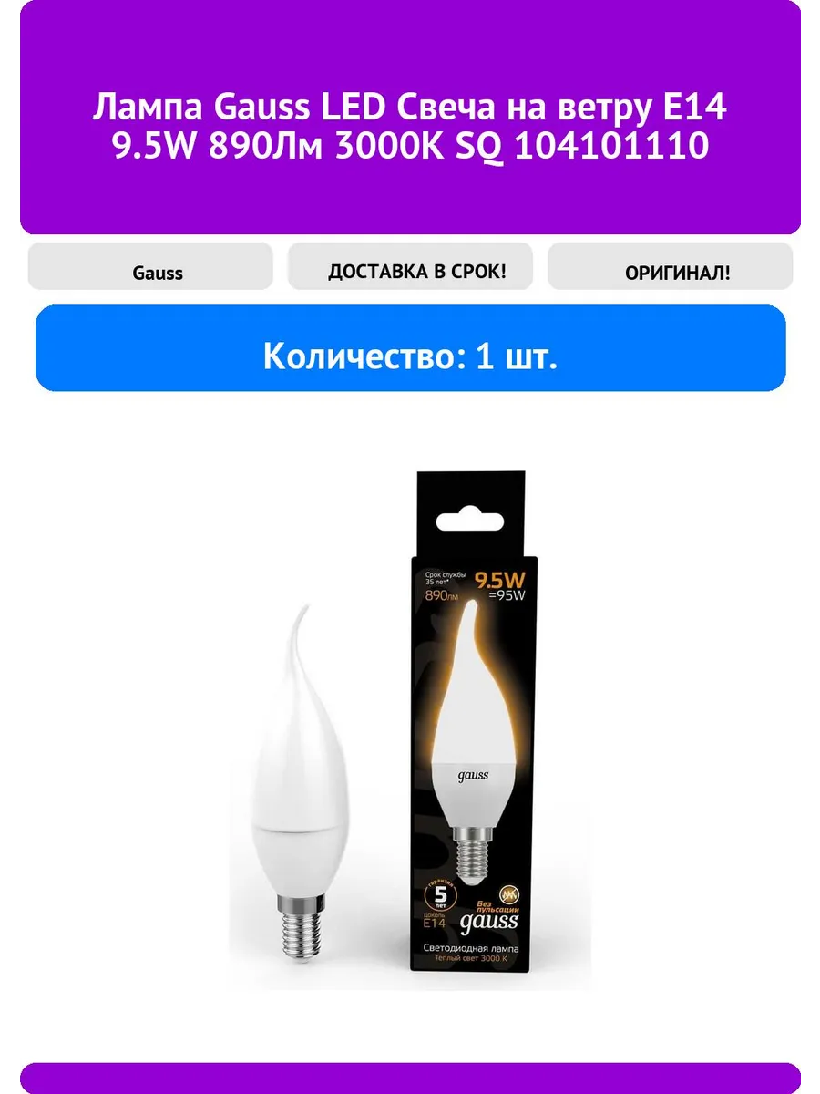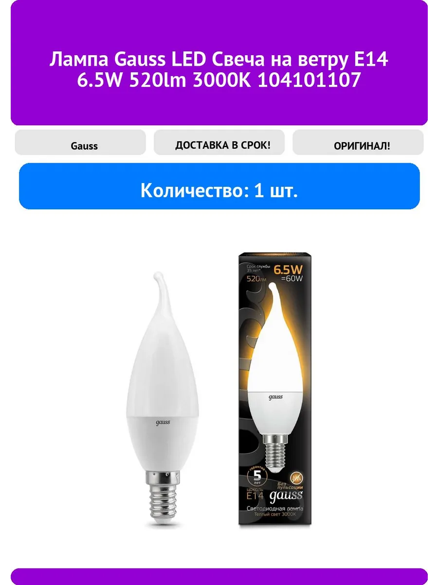 Gauss led 5w e14 102 фото