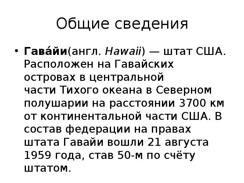 Гавайи кратко