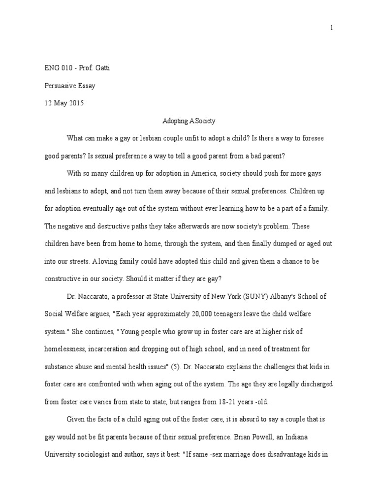 Argumentative Essay On Gay Adoption | WOW Essays