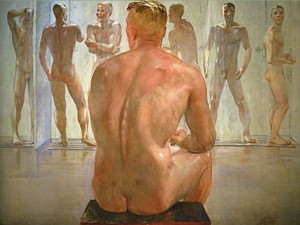 Pibón excitante frente a polla de pared