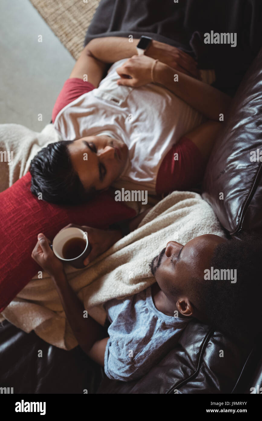 Blonde Milf auf dem Sofa gefickt