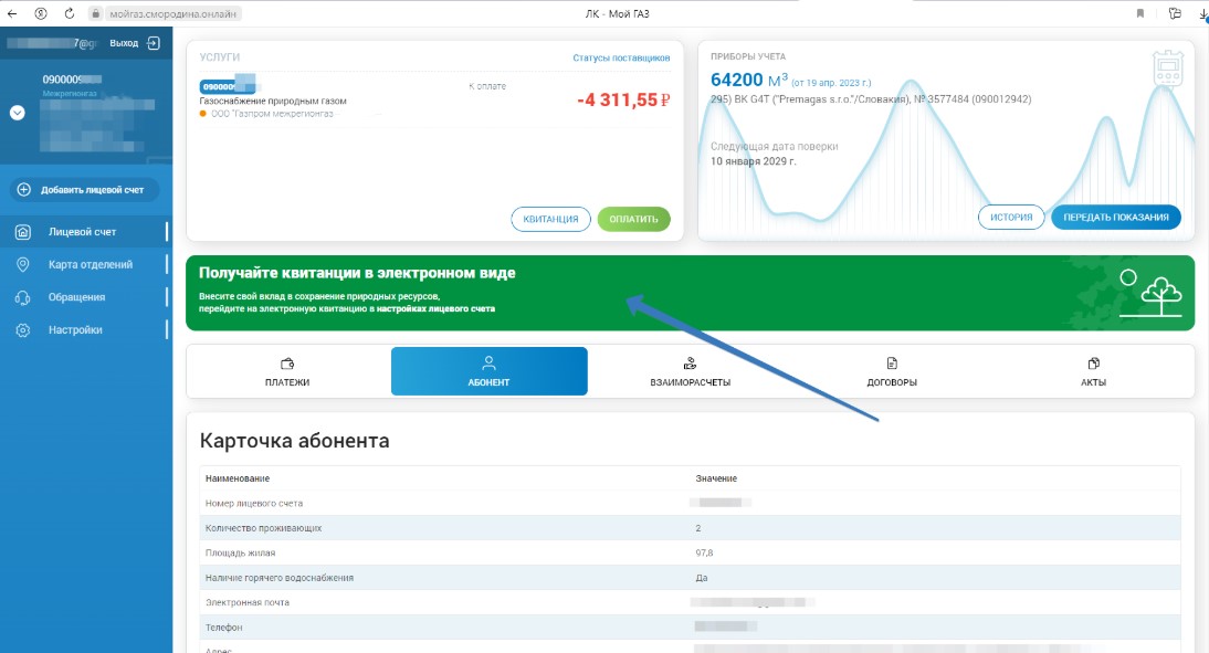 Газ лицевой счет абонента 115 фото