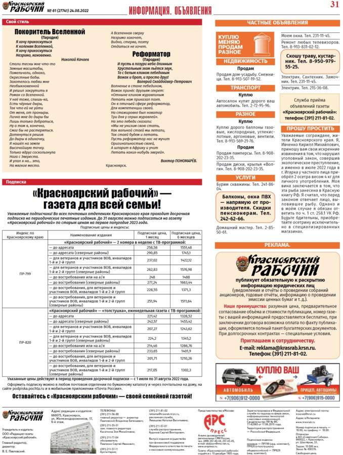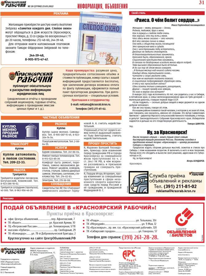 Газеты красноярска объявления