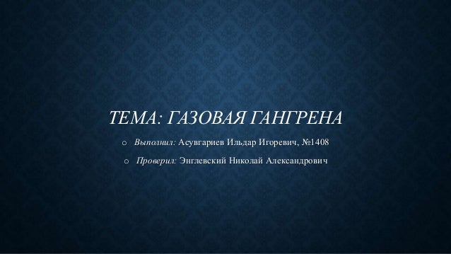Газовая гангрена - хирургическая инфекция, поражающая соединительную и мышечную ткань, которая характеризуется интенсивным течением и стремительным размножением в …