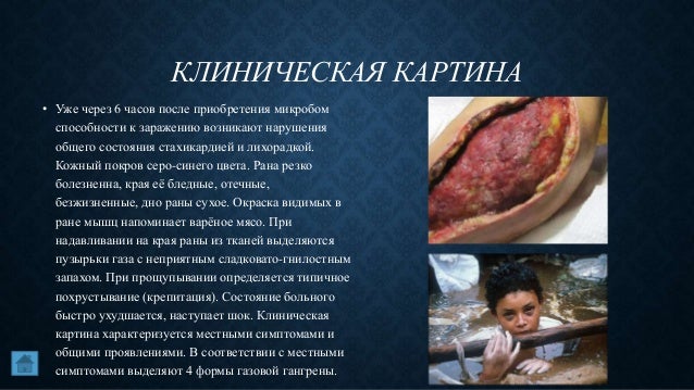 Газовая гангрена: симптомы, фото, лечение, возбудитель болезни