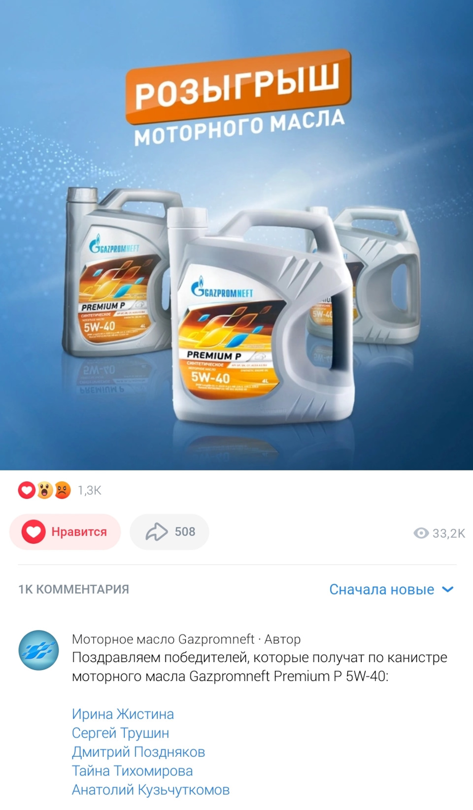 Газпромнефть розыгрыш