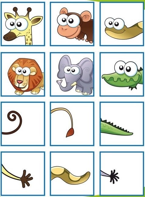 Подобрать хвост для каждого животного и соединить нужные картинки линиями . Назвать у какого животного, какой хвост (длинный, короткий, толстый, маленький, большой и т .д .) .