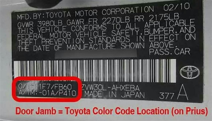 Где на тойоте номер краски