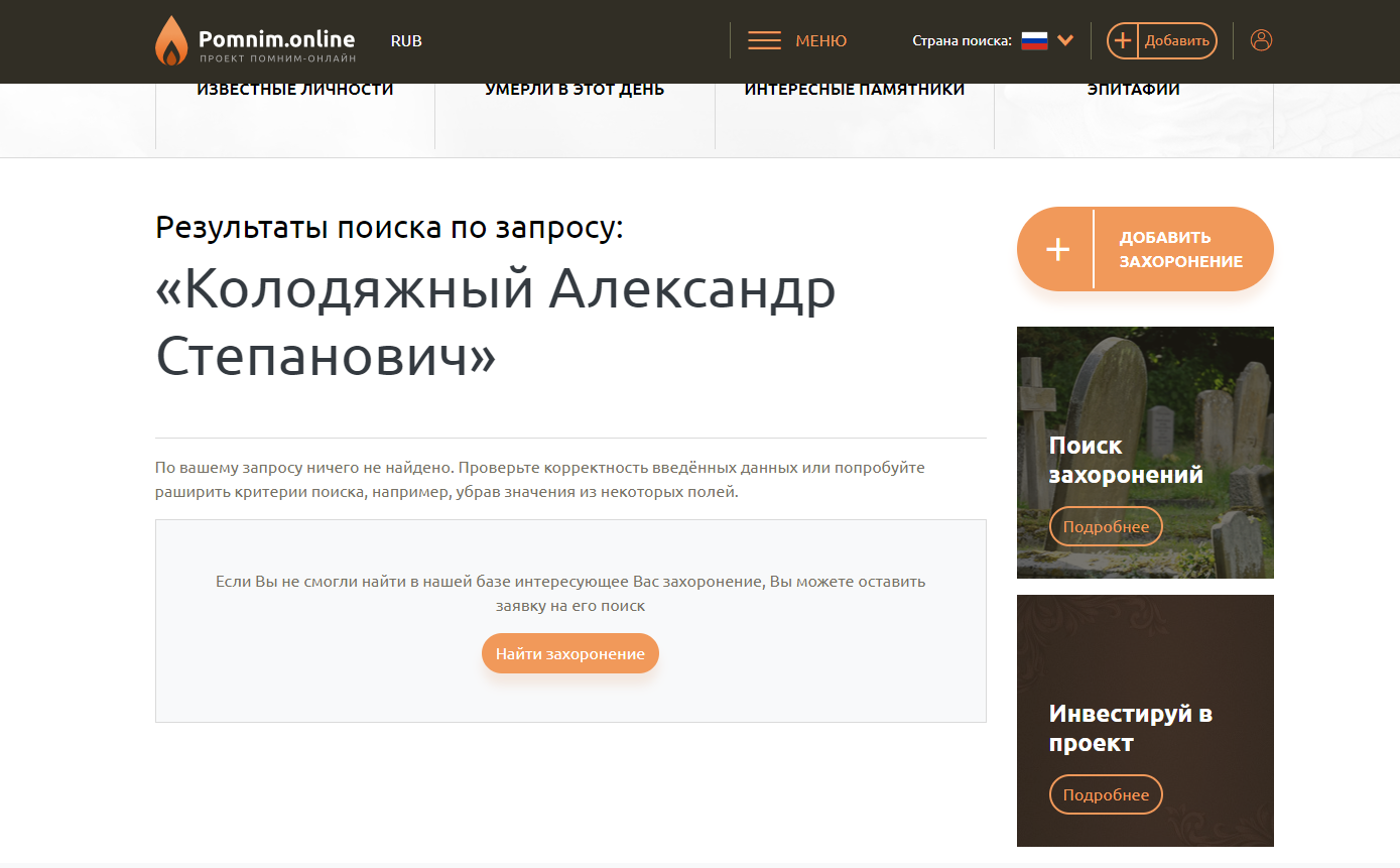 Где узнать о захоронении
