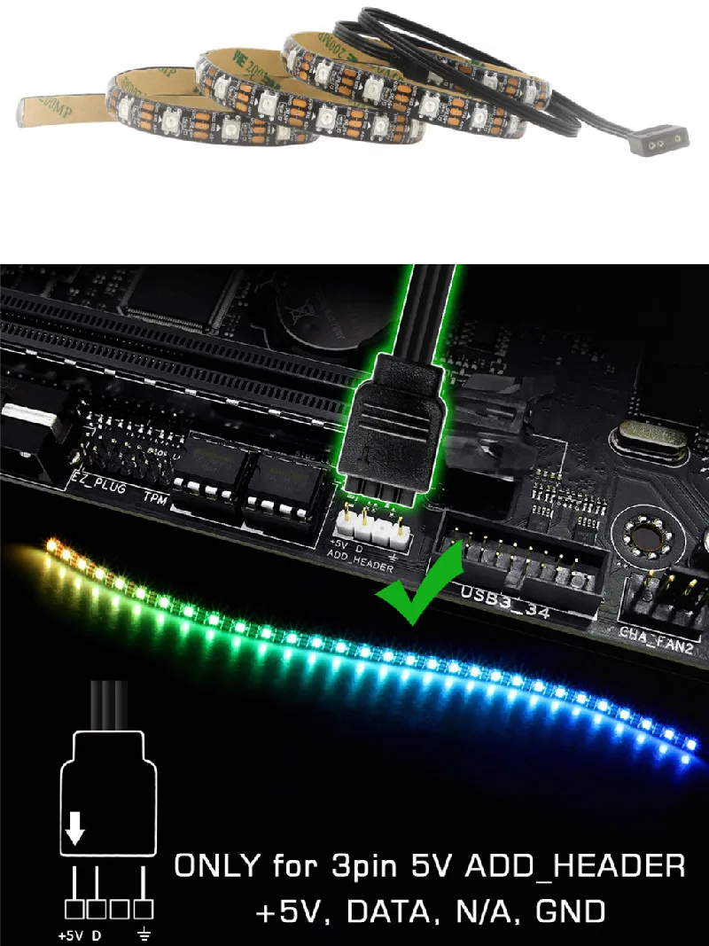 Разъем для адресуемых светодиодных лент, используемый на данной материнской плате, способен определять количество светодиодов на адресуемых лентах второго поколения, что позволяет программному обеспечению . . .