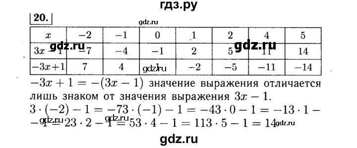 Макарычев 7 класс - > Алгебра 7 класс Макарычев задача № 20 . Заполните таблицу, вычислив значения выражений Зх - 1 и -Зх + 1 для указанных значений х: Задача по алгебре 7 класс № 20 .