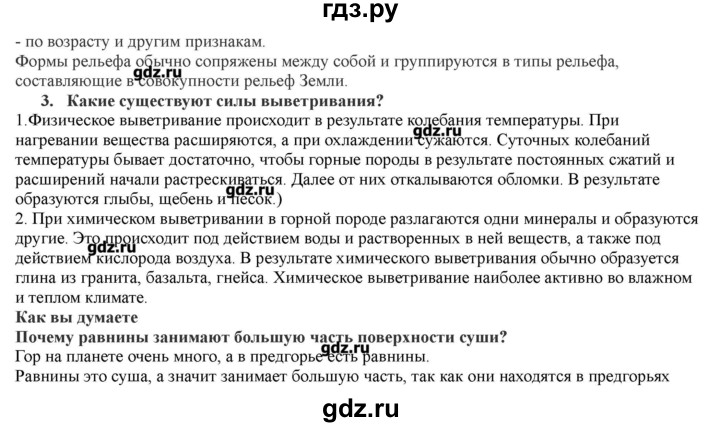 Часть 1 . §1 . Суша в океане §2 . Геологическое время §3 . Строение земной коры §4 . Литосферные плиты и современный рельеф §5 . Платформы и равнины §6 . Складчатые пояса и горы Итоговые задания по теме раздела §7 . Пояса планеты §8 . Воздушные массы и климатические пояса §9 . .