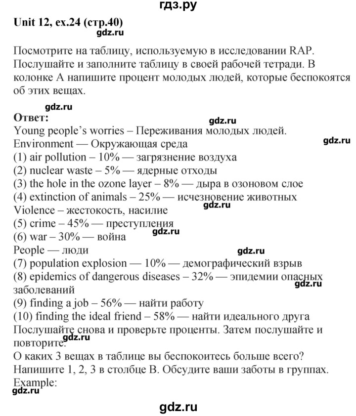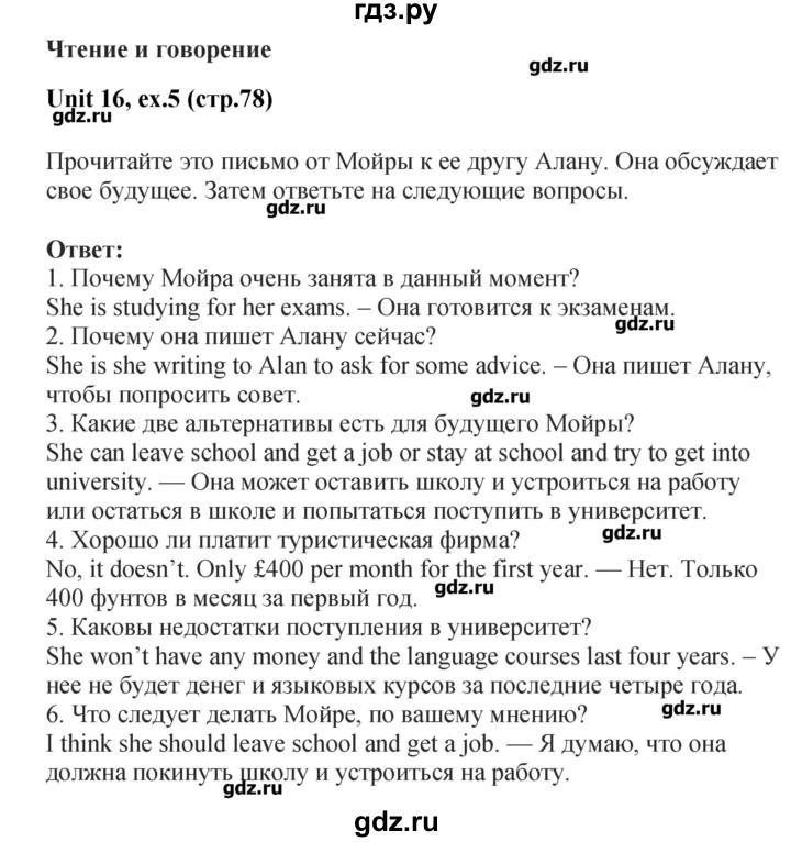 Готовые домашния задания и ответы по английскому языку . ГДЗ по английскому языку 7 класс .