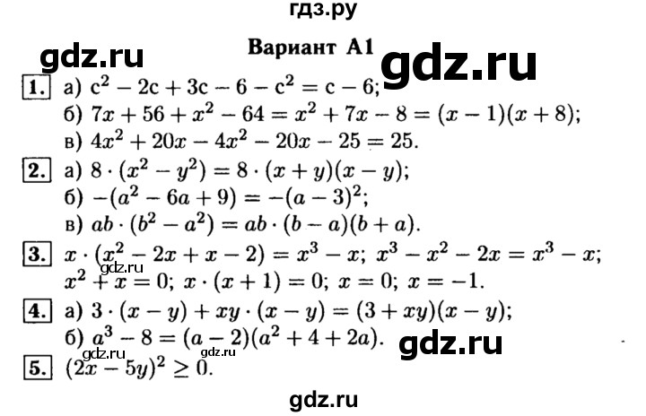 КР-7 Алгебра 7 Макарычев ОТВЕТЫ - решения контрольной № 7 из пособия "Алгебра . Дидактические материалы . 7 класс / Л .И . Звавич" по КР-7 Алгебра 7 Макарычев ОТВЕТЫ — это решения и ответы на контрольную работу № 7 «Квадрат суммы и квадрат разности .