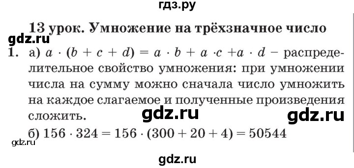 ГДЗ (готовые домашние задания ), решебник онлайн к учебнику по математике за 4 класс авторов Моро, Бантова часть 1 задание(номер) 13 - вариант решения упражнения 13 .