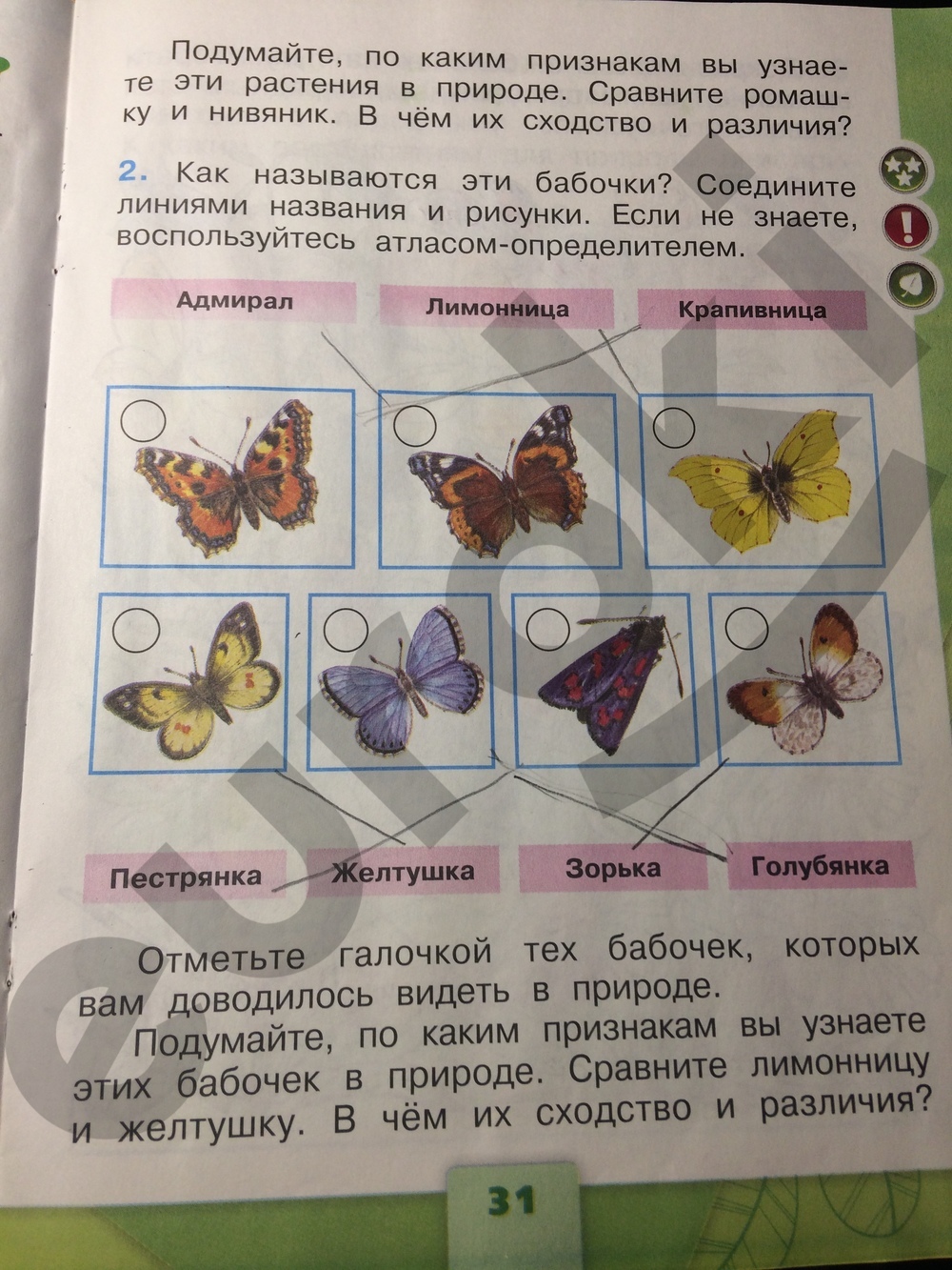 Короткие увлекательные задания для детей содержит рабочая тетрадь Плешакова 1 часть . В сборнике ГДЗ по Окружающему миру для 1 класса минимум текста, красочные страницы с цветными иллюстрациями помогут справиться с упражнением .