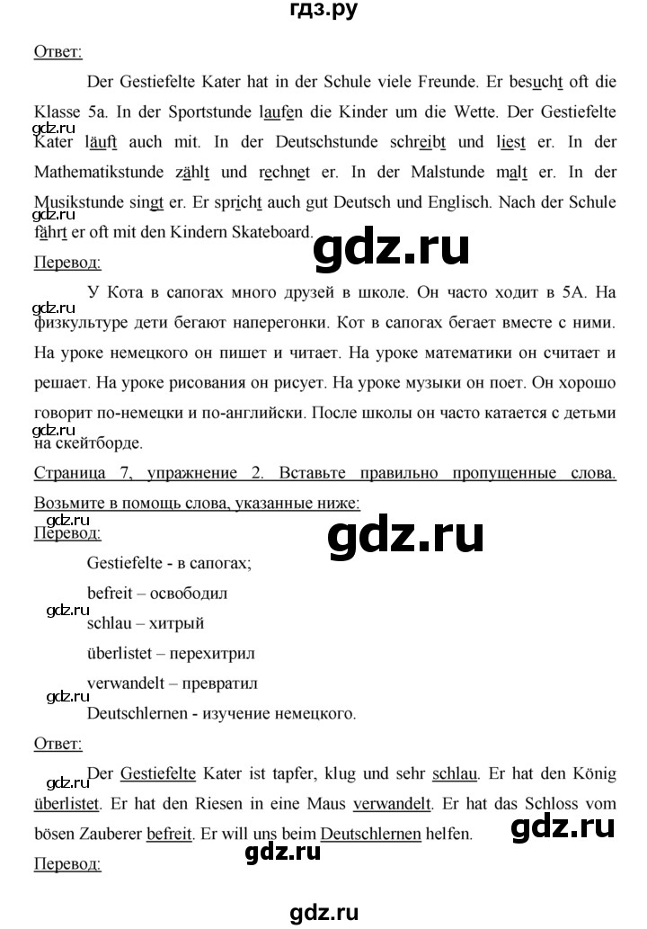 ГДЗ : готовые ответы по немецкому языку за 7 класс, решебник И .Л . Бим, онлайн решения на GDZ .RU .