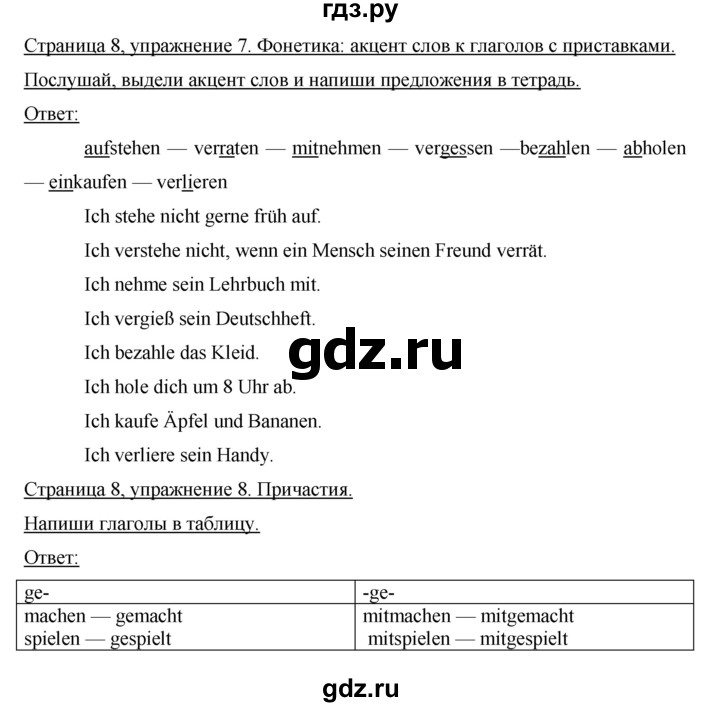 ГДЗ : готовые ответы по немецкому языку за 7 класс, решебник И .Л . Бим, онлайн решения на GDZ .RU .