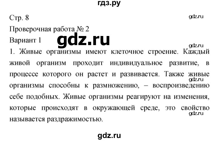 Страница 8 с ответами ГДЗ Латюшин Рабочая тетрадь 7 класс по биологии .