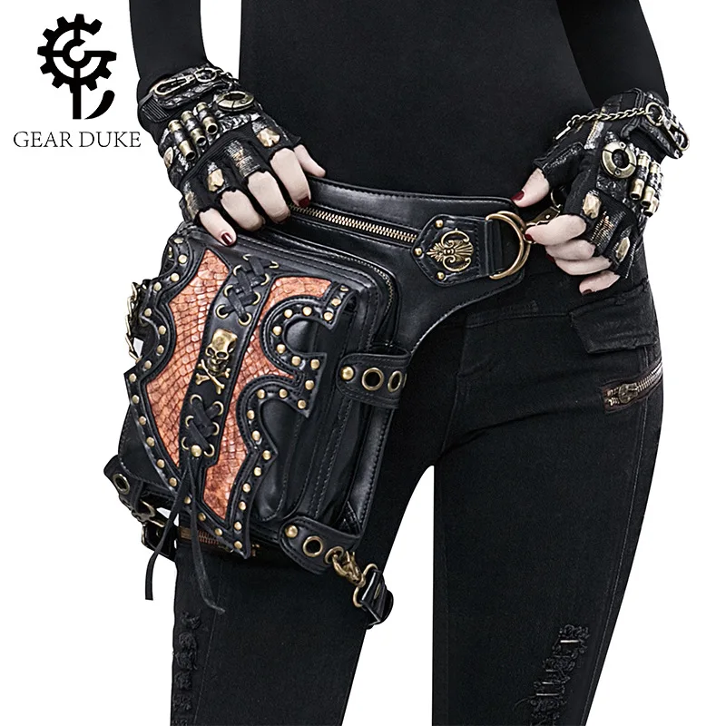 Gear Duke Streampunk Skull Rivet Bandage Chain Bag Medieval Time Waist Bag Multiple Wearing Messenger Motorcycle Riding Backpack - Купить с бесплатной доставкой