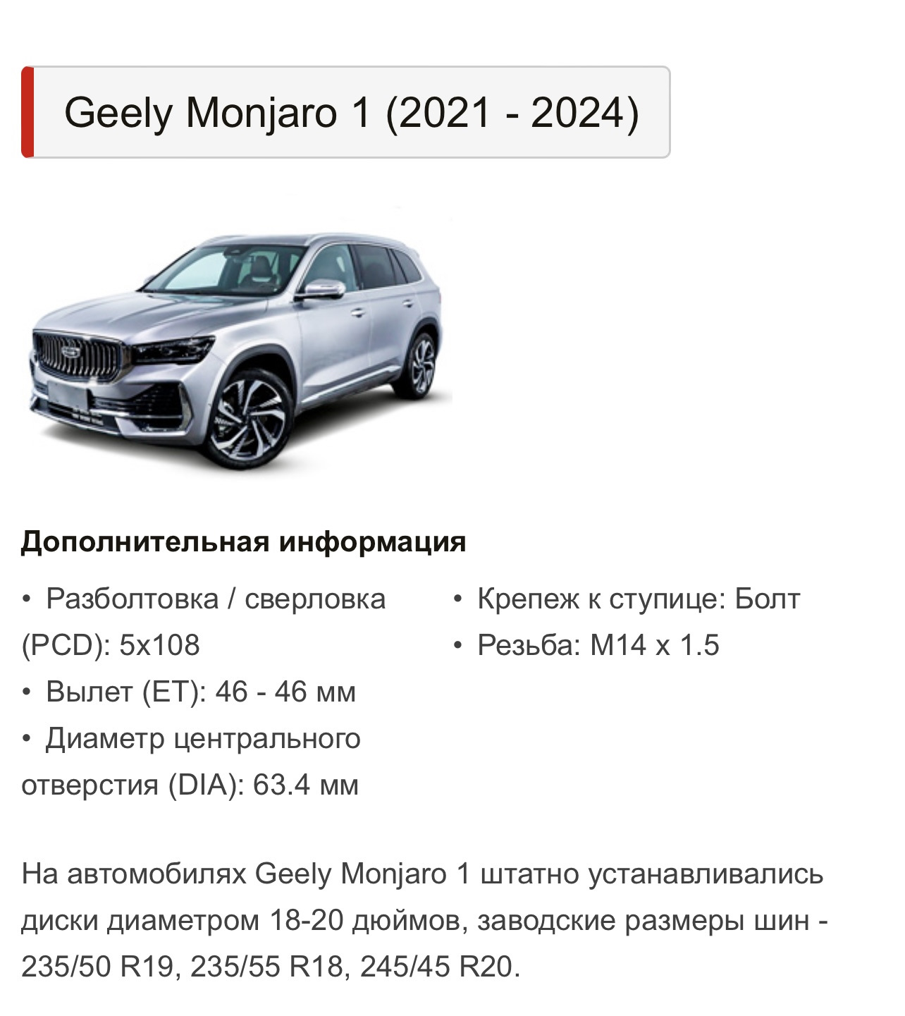 Geely monjaro размер резины 94 фото