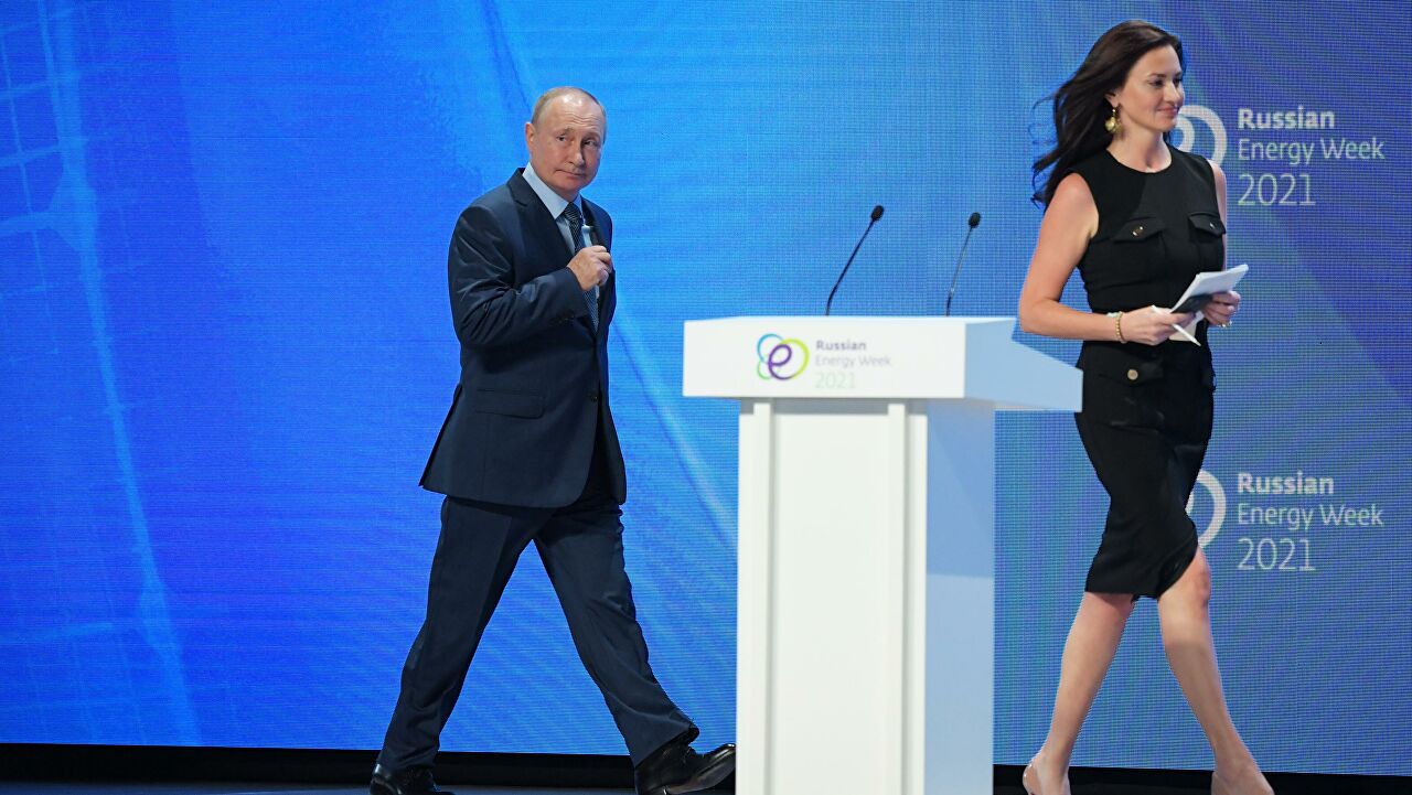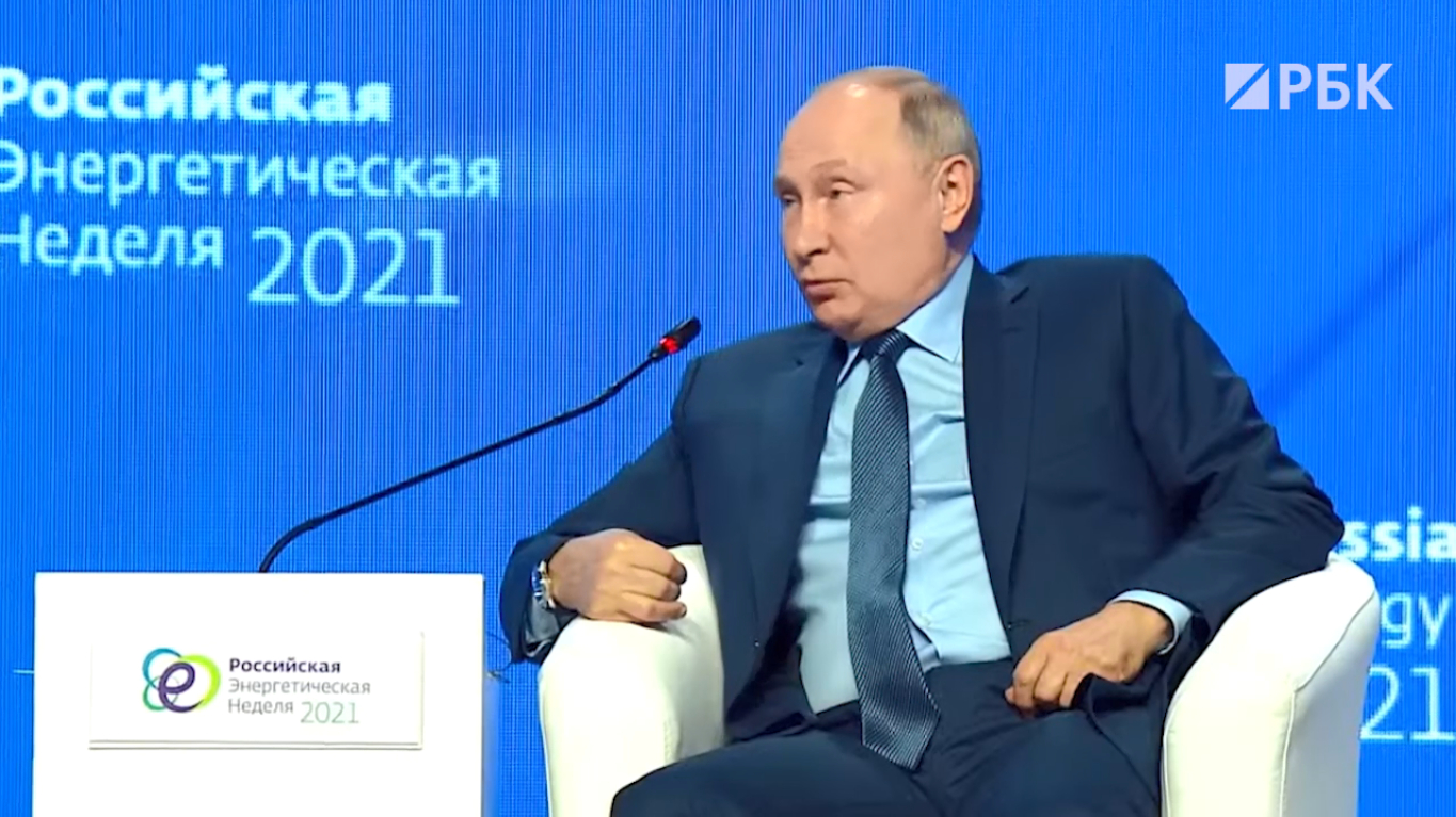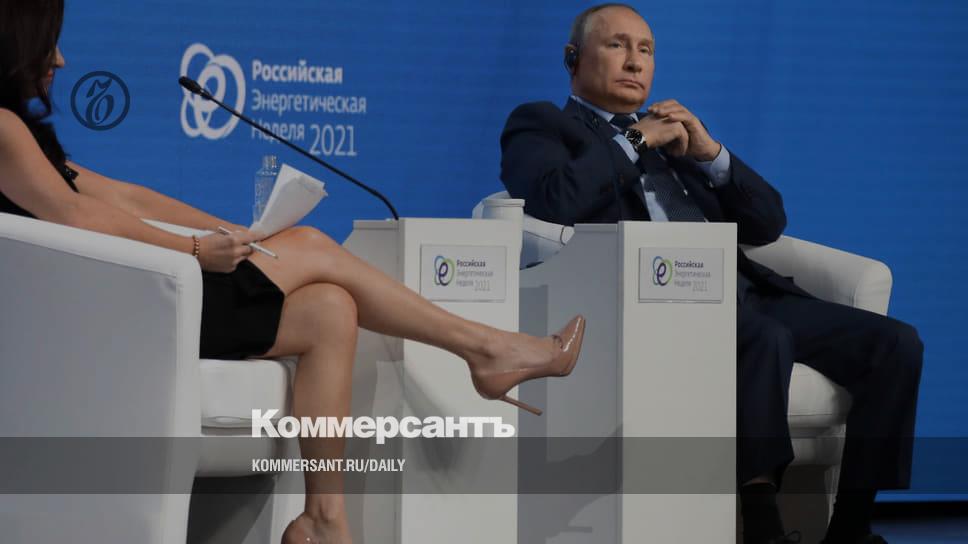 Российский президент Владимир Путин на форуме «Российская энергетическая неделя» дал интервью ведущей американского телеканала cnbc Хедли Гэмбл